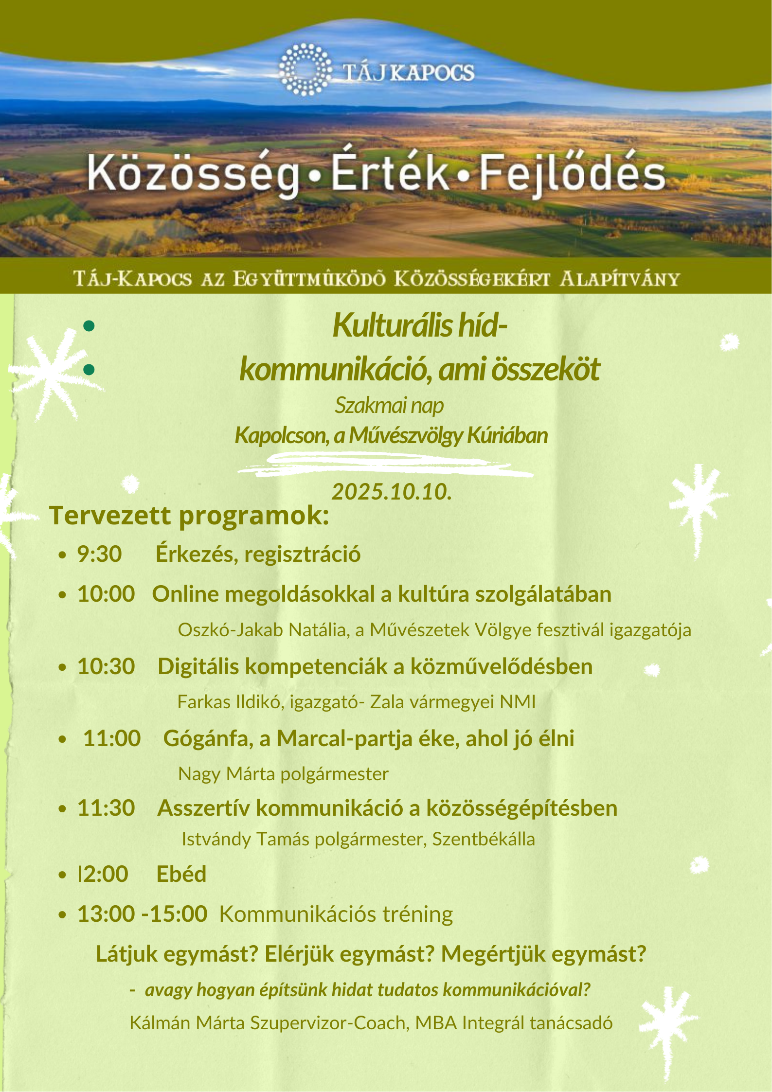 - Heti programjaink:Ezen a héten a MűvészVölgy Kúriában – minden korosztálynak! Kapolcson újra színes programokkal telik a hét – várunk titeket a MűvészVölgy Kúriában izgalmas közösségi eseményekkel, […]