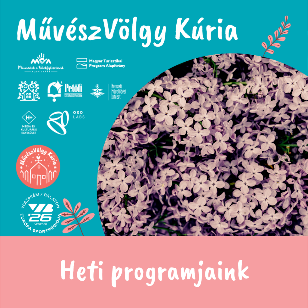 A MűvészVölgy Kúria eseményei az idei évben a Nemzeti Kulturális Alap és a Hangfoglaló Program, valamint a H+ Média Kulturális Egyesület támogatásával valósulnak meg.